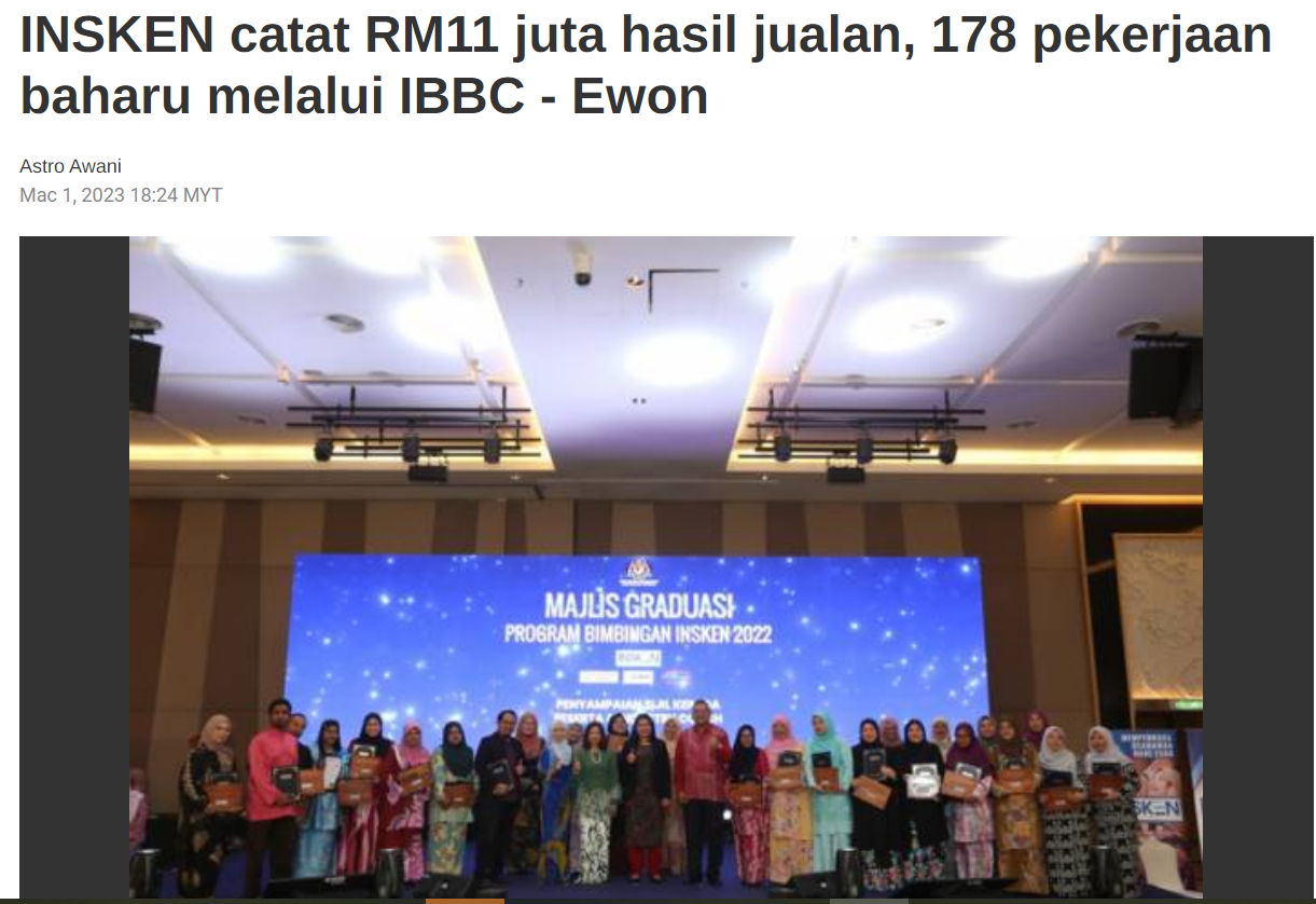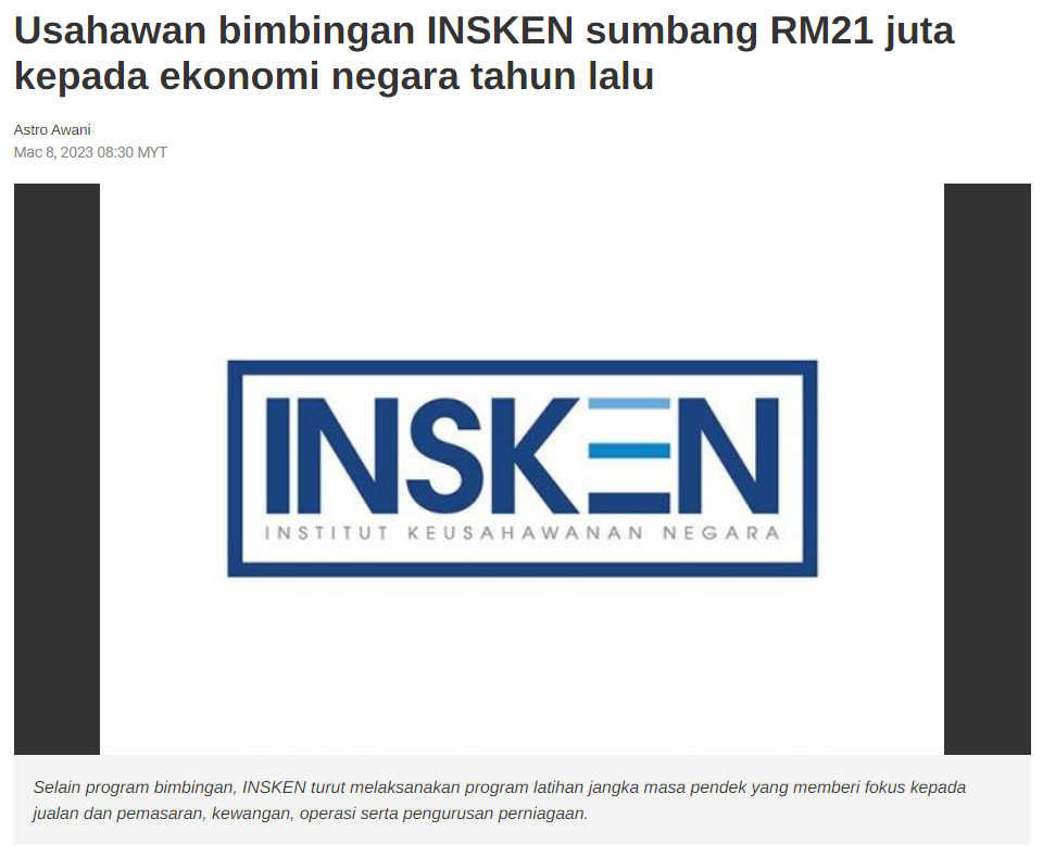 | Astro Awani Online - USAHAWAN BIMBINGAN INSKEN SUMBANG RM21 JUTA KEPADA EKONOMI NEGARA TAHUN LALU
