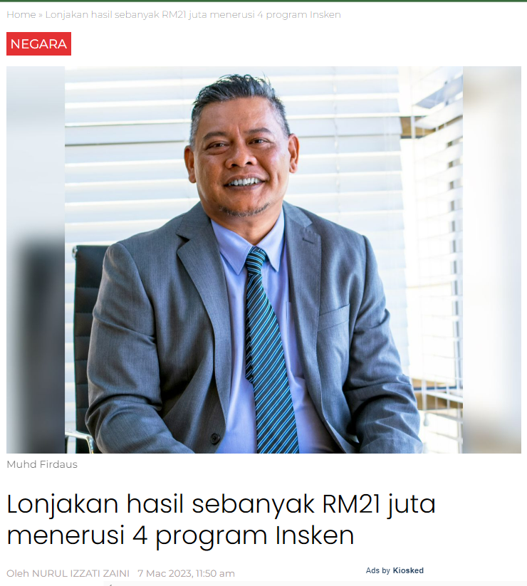 | Kosmo - LONJAKAN HASIL SEBANYAK RM21 JUTA MENERUSI 4 PROGRAM INSKEN