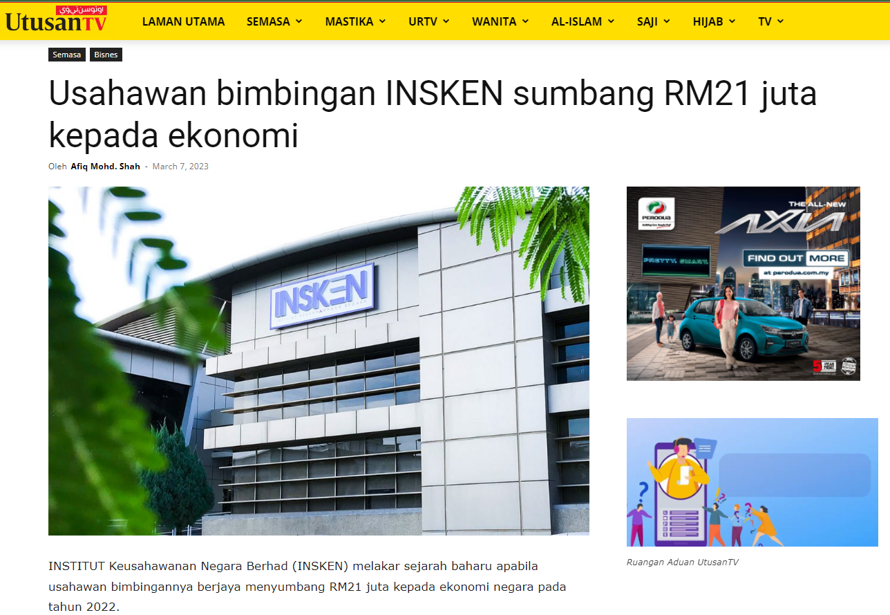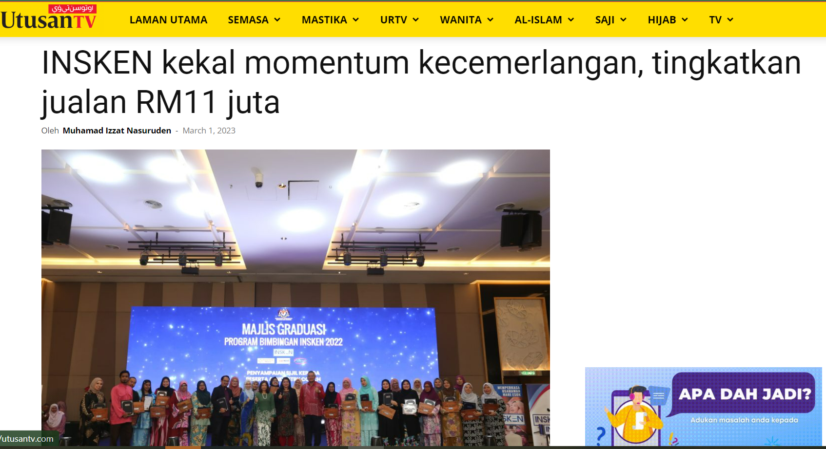 | Utusan TV - INSKEN KEKAL MOMENTUM KECEMERLANGAN, TINGKATKAN JUALAN RM 11 JUTA