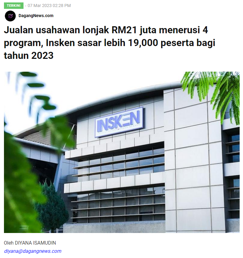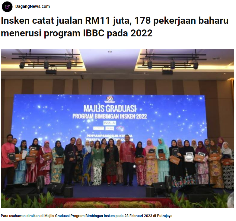 | Dagang News - JUALAN USAHAWAN LONJAK RM21 JUTA MENERUSI 4 PROGRAM, INSKEN SASAR LEBIH 19,000 PESERTA BAGI TAHUN 2023