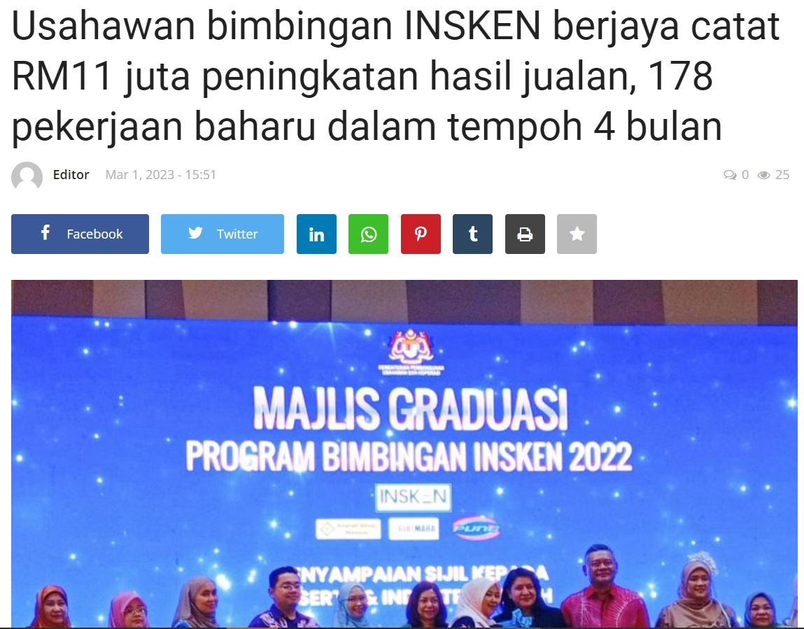 | Malaysia Tribune - USAHAWAN BIMBINGAN INSKEN BERJAYA CATAT RM 11 JUTA PENINGKATAN HASIL JUALAN, 178 PEKERJAAN BAHARU DALAM TEMPOH 4 BULAN