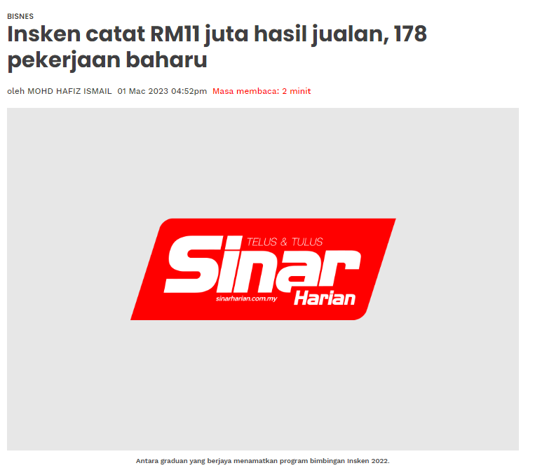 | Sinar Harian - INSKEN CATAT RM 11 JUTA HASIL JUALAN, 178 PEKERJAAN BAHARU